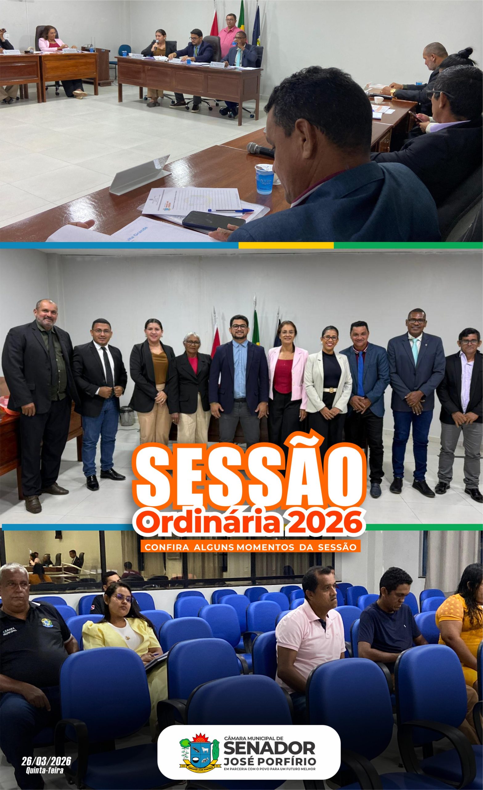 Sessão ordinária realizada na Câmara Municipal de Senador José Porfírio 🏛️📅 26/03/2026