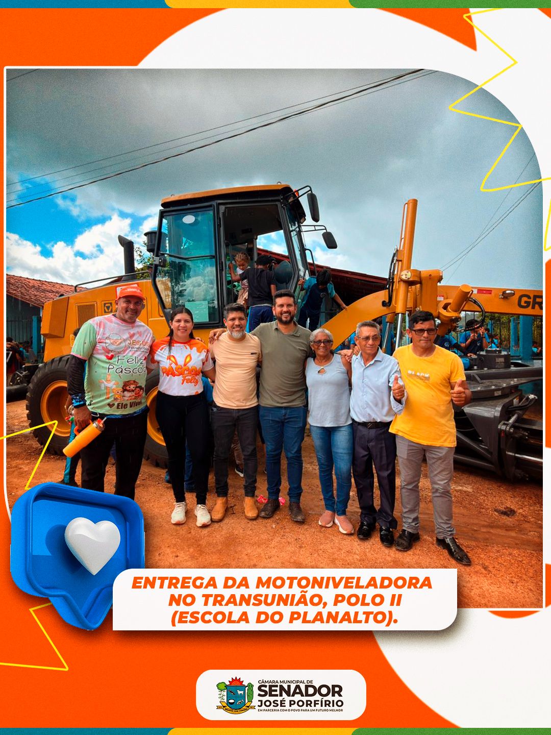 Vereadores, ao lado do prefeito Leonaldo Albuquerque e do Vice-prefeito Dr. Marlysson Allan, realizaram a entrega de uma motoniveladora no Travessão do transunião, Polo II  Escola Planalto.