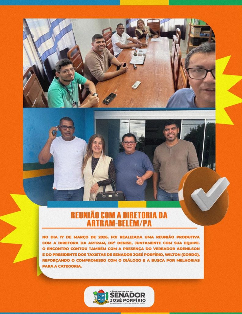 O encontro contou também com a presença do vereador Adenilson e do presidente dos taxistas de Senador José Porfírio, Wilton (Gordo), reforçando o compromisso com o diálogo e a busca por melhorias para a categoria.